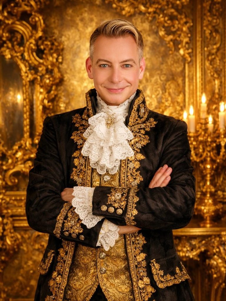 - Outfit: opulentes Barock-Kostüm mit Swarovski-Details und Schmuckakzenten